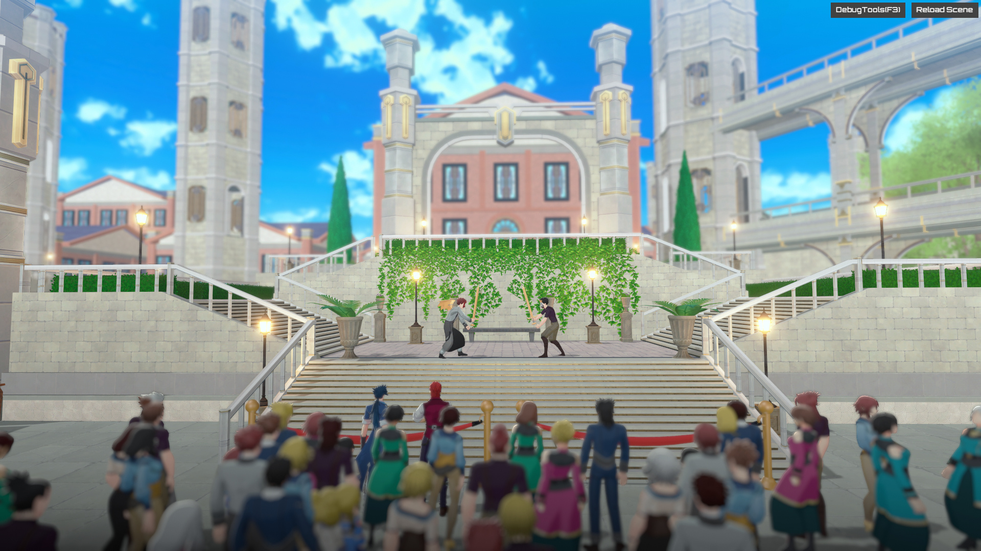 Let’s add some opulence. As a classical symbol of power and prosperity, we should think how to reflect this without necessarily resorting to the obvious (e.g. golden statues). A "rich" city could boast it through complex and/or luxurious architecture (be it due to building techniques or types of materials used), and embellishments like gardens, etc. Particularly in this world, where even plants are under the risk of becoming Aberrants, I can’t imagine anything more representative of wealth and prosperity than a well-kept garden.Currently, the “festival” seem to be just a few vendor barracks on the side. Even the play, a staple for the occasion that has been commemorated for centuries, was done on simple stairs with actors barely wearing any costume. This makes it feel like a regular street performance, not a festival.Properly decorating the environment would completely change how we perceive it.