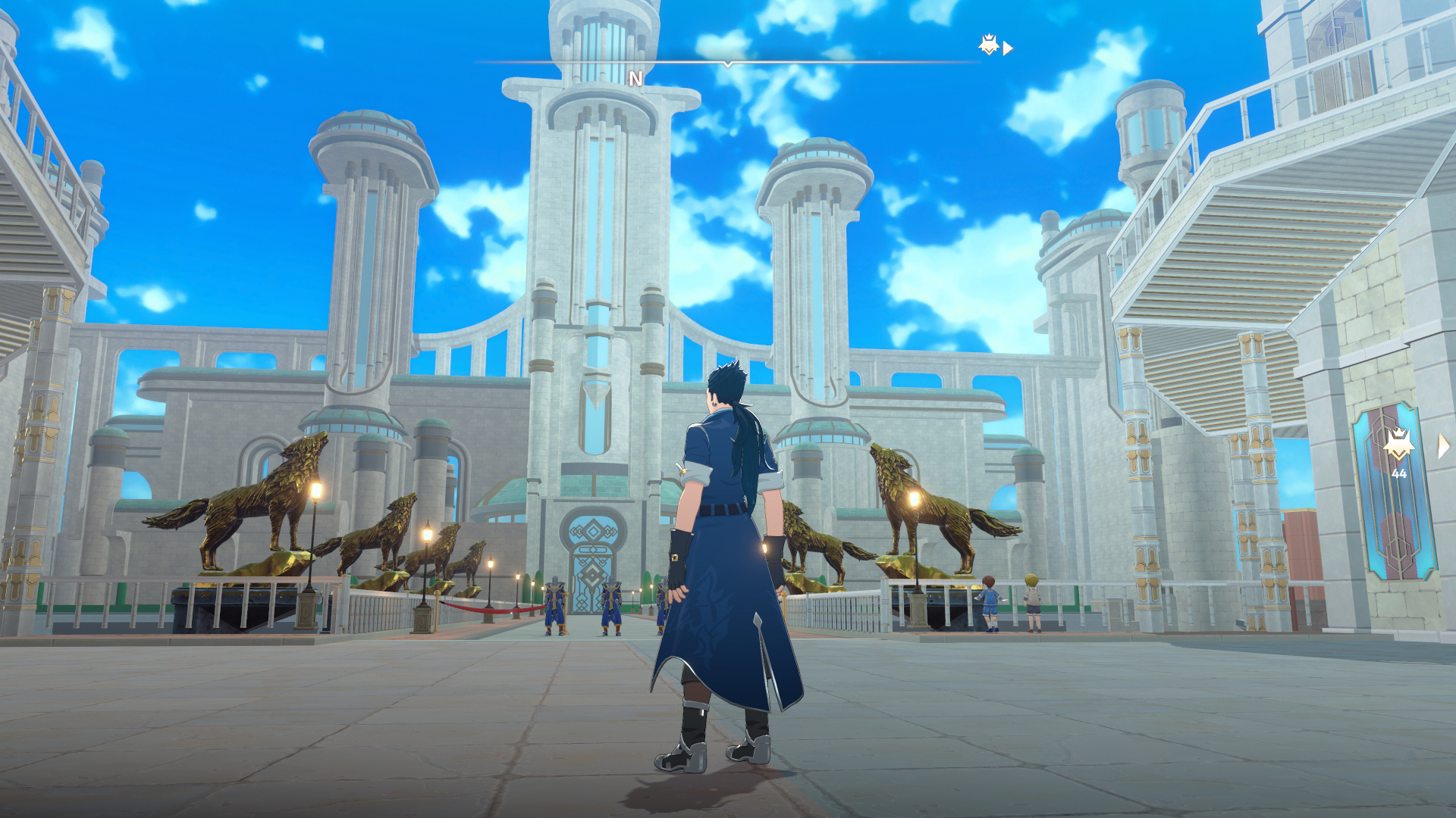 Similar to how I analyzed the square, let’s write down the key concepts I see for Zander.“Zander is a young looking descendant from the hero, being a trained warrior himself, resulting in overconfidence and cockiness. Despite being the prince, we can see how informal he wishes he could be based on his dialogues. His family’s motif is a wolf, which is used as symbol around the palace. By looking at his current design, we can see Zander takes notable care of his appearance, letting his personality and style shine through”.