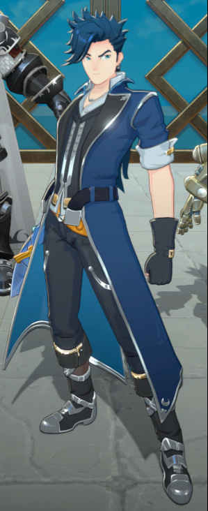 Despite Zander looking well put, his appearance is akin to a regular wanderer, with barely any signs of his royal lineage. It is a nice day-to-day clothing, but since he will be on the spotlight for the festival, it's hard not to imagine him using something more regal.The hair fits him well, but could use some more work since the flow of the bangs and its spikes are not too harmonious. His main color is blue, being the hue of his eyes and hair, which is nice to keep in mind, so let’s work a bit more the value contrasts to avoid elements merging (such as the hair with the coat).