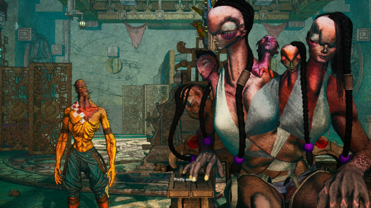 They resemble a standard ogre-like creature, leading us to associate this story with yet another fantasy setting instead. Some of the main characters also have a very traditional fantasy-adventurer appearance, reinforcing this feeling.The core of the issue lies in the creature feeling too plausible. It looks like a creature that could exist in this ecosystem, instead of the deformity the Aberrants are described to be.The extra arms are a good touch, but not enough by themselves. Even more so when we look at the belt. How can a transformed creature that lost their reason wear a perfectly-sized accessory?