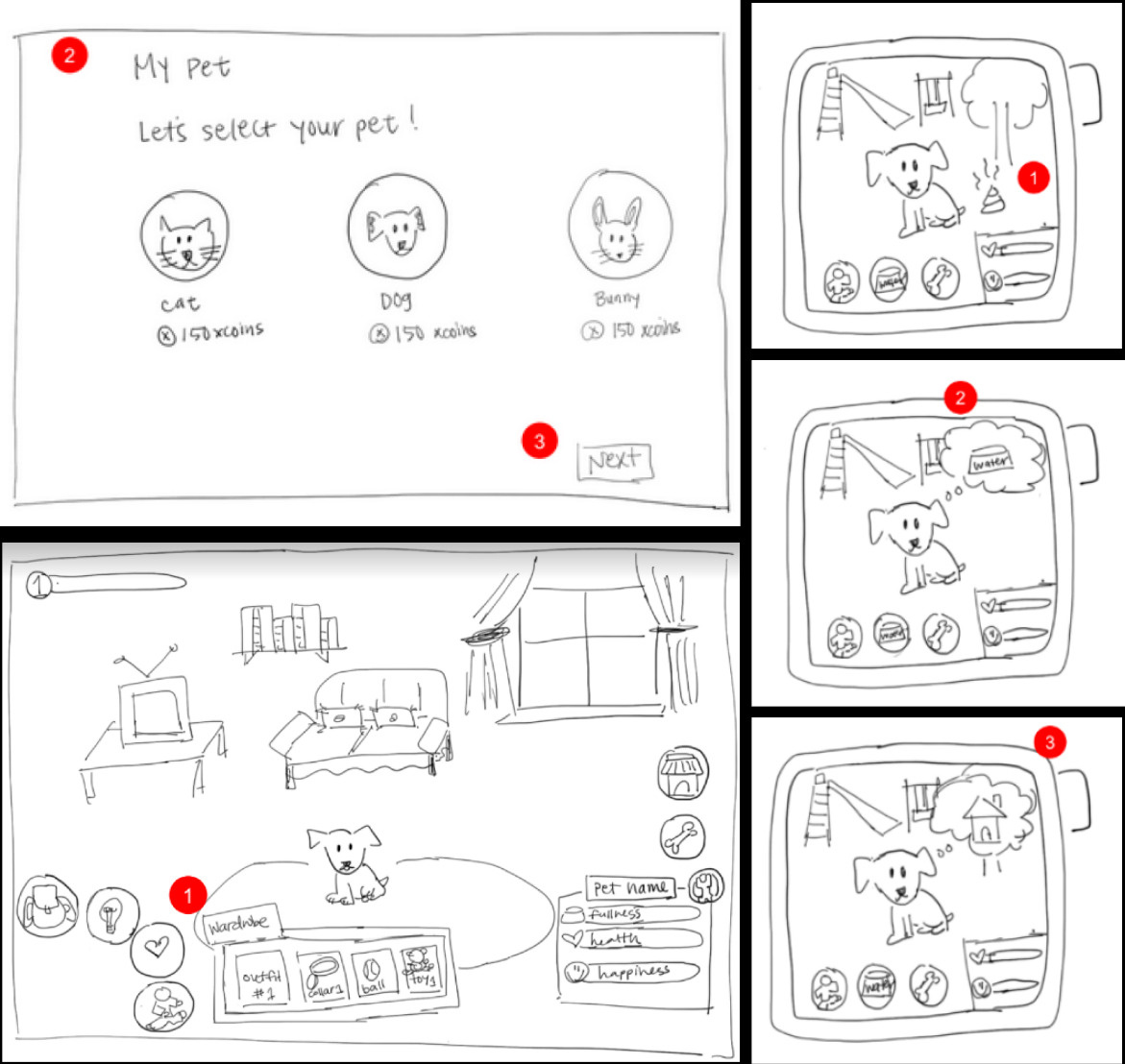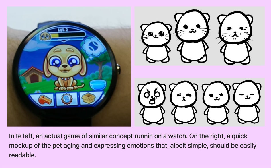 (Smartwatch & Mobile)• A Tamagotchi-like game in which you care for and play with virtual pets, as you raise and customize them.• My role focused on the visual exploration and art proposal for pre-production