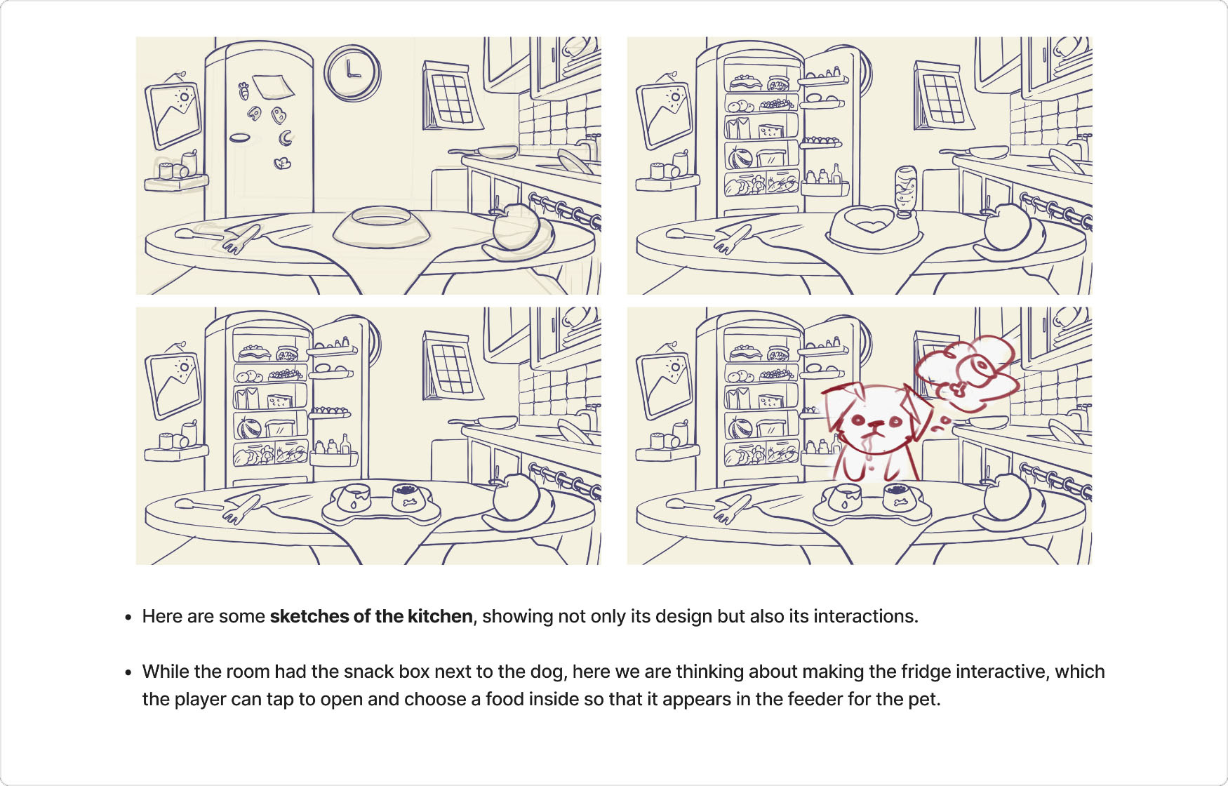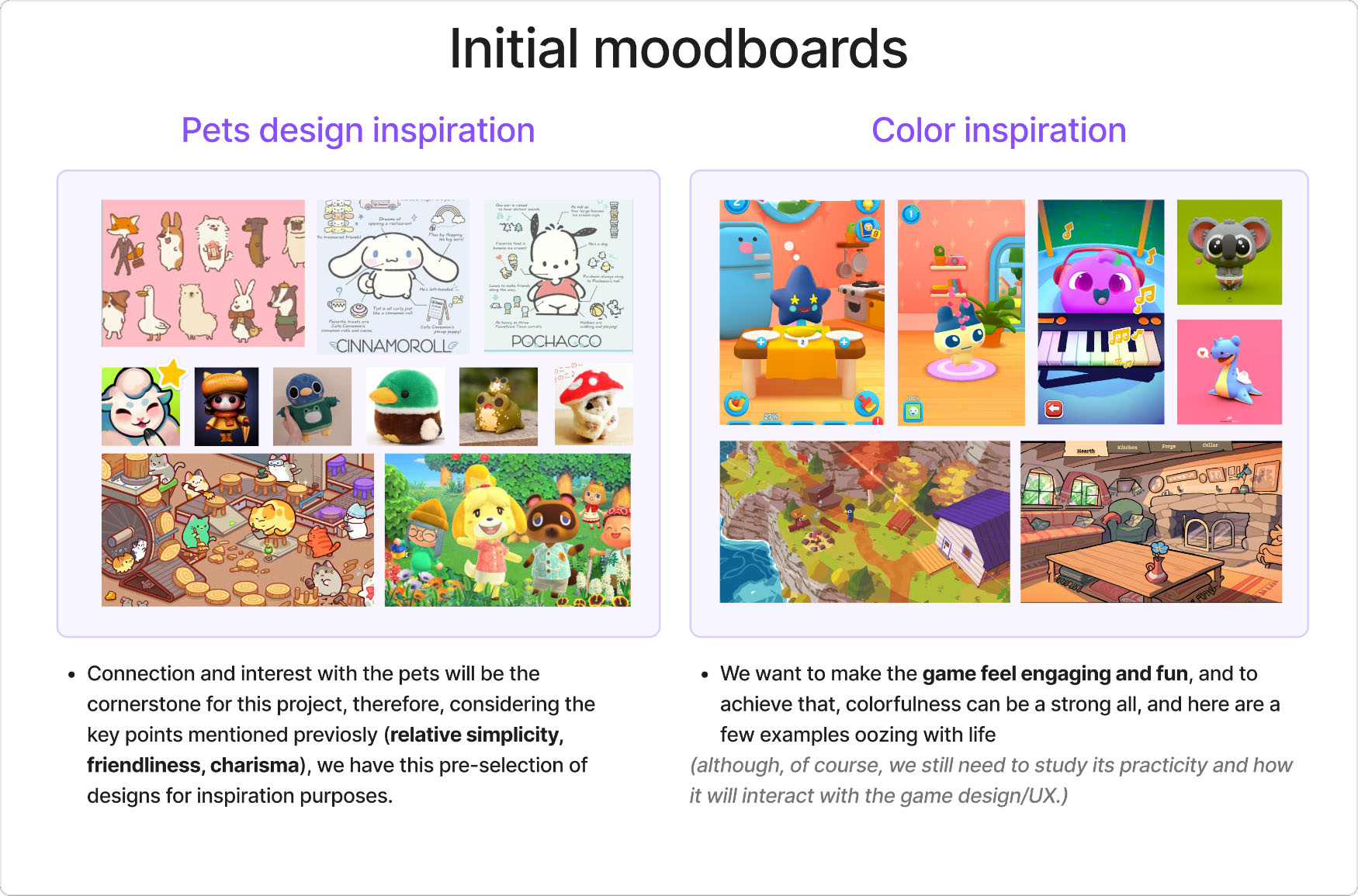 With the characters explored, it was time for the backgrounds!We started looking at stylized references, such as other virtual pet games and Moving Out, which has a really clean aesthetic close to what we wanted (despite its colors being a bit more vivid than our aim).