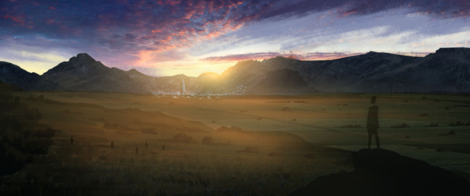 Albeit the tragedy of the scene, this one should feel calm and regal. We tried other camera angles, but they ended up looking like he either was 'ascending' or being sacrificed. The way it is we managed to show there was a fight, that he was defeated, and yet accepting his fate and basking one final time in the light.