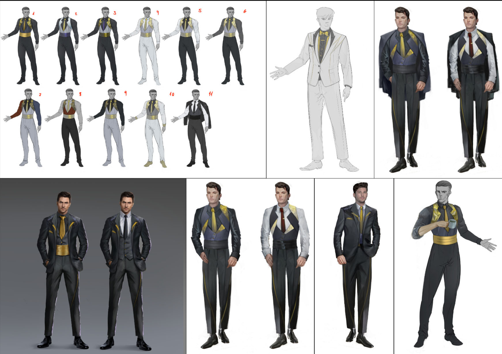 It's hard to imagine Zander without a long cloth hanging around, like his coat, and a flamboyant hair. So regardless of how regal his clothing should be, I'll keep this in mind since it can’t overshadow his personality. He surely would find ways to style the attire, even at the cost of formality.